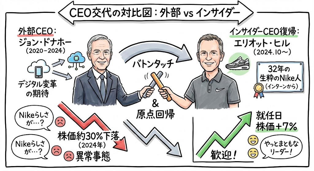実は彼の前任者、ジョン・ドナホーさんはNike史上2人目の「外部CEO」やった