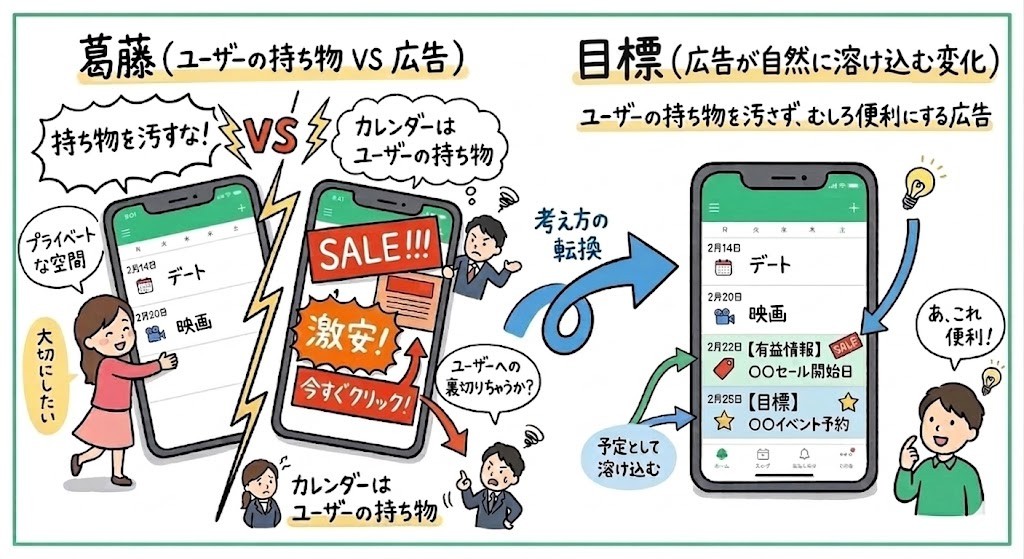 「セールの開始日、イベントの予定、見たい番組の放送日。ユーザーにとって有益な情報であれば、それは広告ではなく『気づき』になるはず」